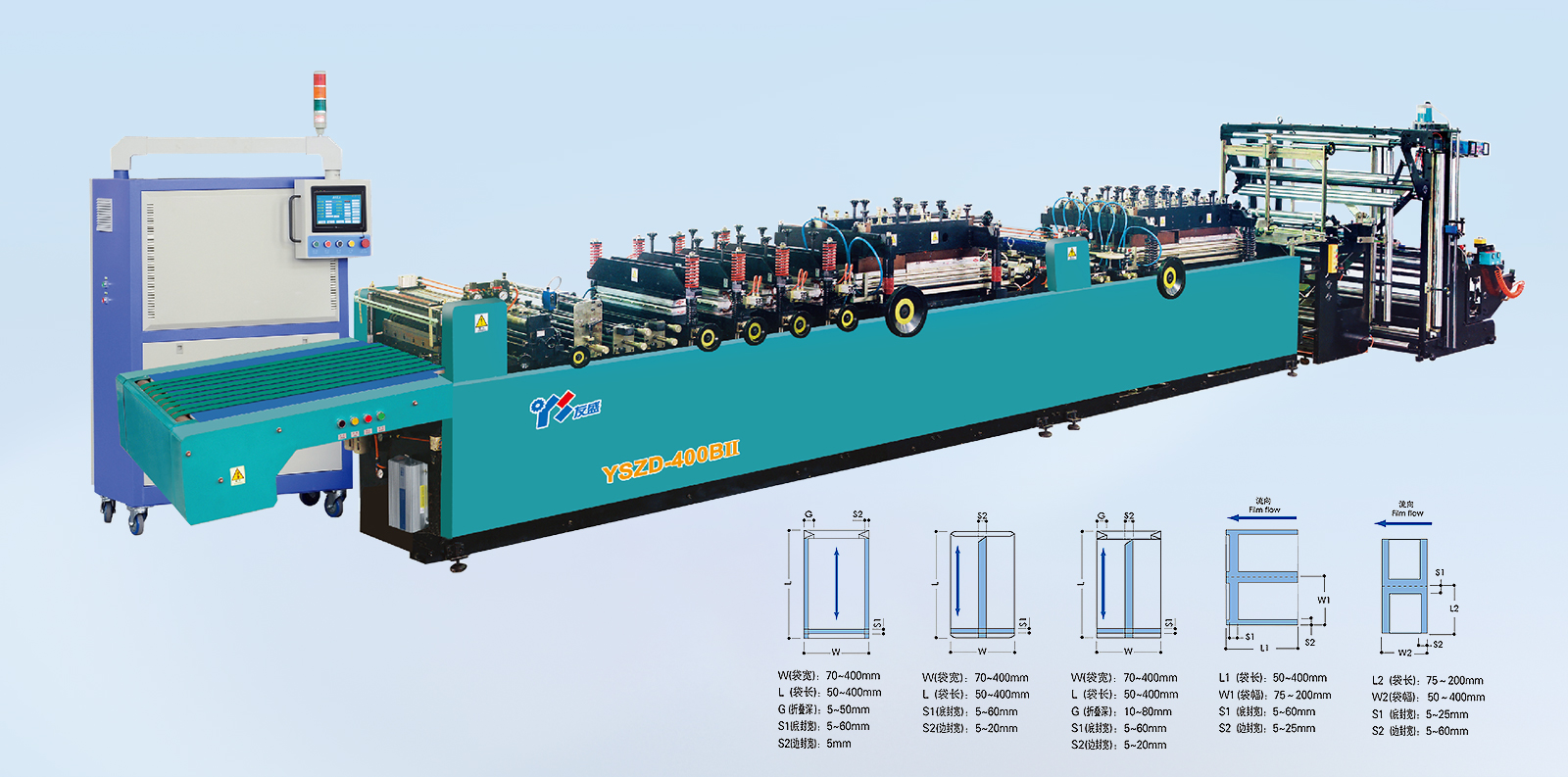 YSZD-400B Ⅱ中封、三邊封、四邊封高速全自動(dòng)制袋機(jī) YSZD-300/400/500ZF中封、側(cè)封、四邊封高速全自動(dòng)制袋機(jī) YSZD-500ZF中封、側(cè)封、四邊封高速全自動(dòng)制袋機(jī) YSZD-500/600/700/800/1000H三邊封高速全自動(dòng)制袋機(jī) YSZD-600C無(wú)接縫站立袋三邊封、站立袋高速全自動(dòng)制袋機(jī) YSZD-500HK三邊封、站立袋、拉鏈袋、無(wú)接縫站立拉鏈袋、儲(chǔ)料架高速全自動(dòng)制袋機(jī) YSZD-600HB三邊封、站立袋、拉鏈袋高速全自動(dòng)制袋機(jī) YSZD-600HK三邊封、站立袋、拉鏈袋、無(wú)接縫站立拉鏈袋高速全自動(dòng)制袋機(jī) YSZD-600HK Ⅰ上下圖案跟蹤三邊封、站立袋、拉鏈袋、無(wú)接縫站立拉鏈袋高速全自動(dòng)制袋機(jī) YSZD-600HK Ⅱ CCD視覺定位裁切三邊封、站立袋、拉鏈袋、無(wú)接縫站立拉鏈袋高速全自動(dòng)制袋機(jī) YSZD-800HK三邊封、站立袋、拉鏈袋、無(wú)接縫站立拉鏈袋高速全自動(dòng)制袋機(jī)